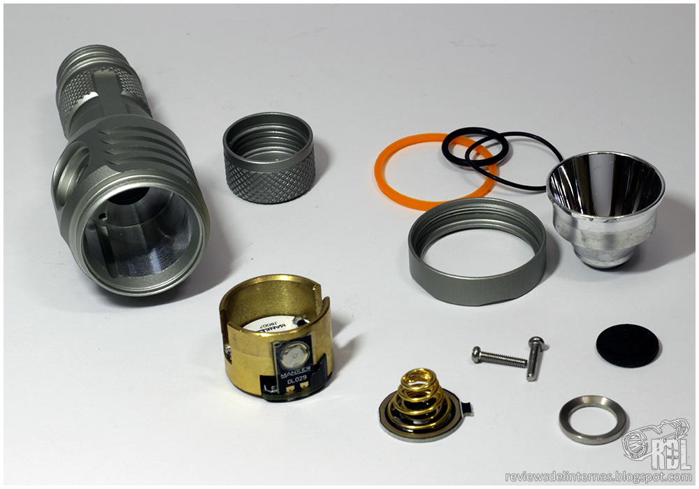 Al desmontar la linterna encontramos algunos detalles muy interesantes que merecen ser mencionados: