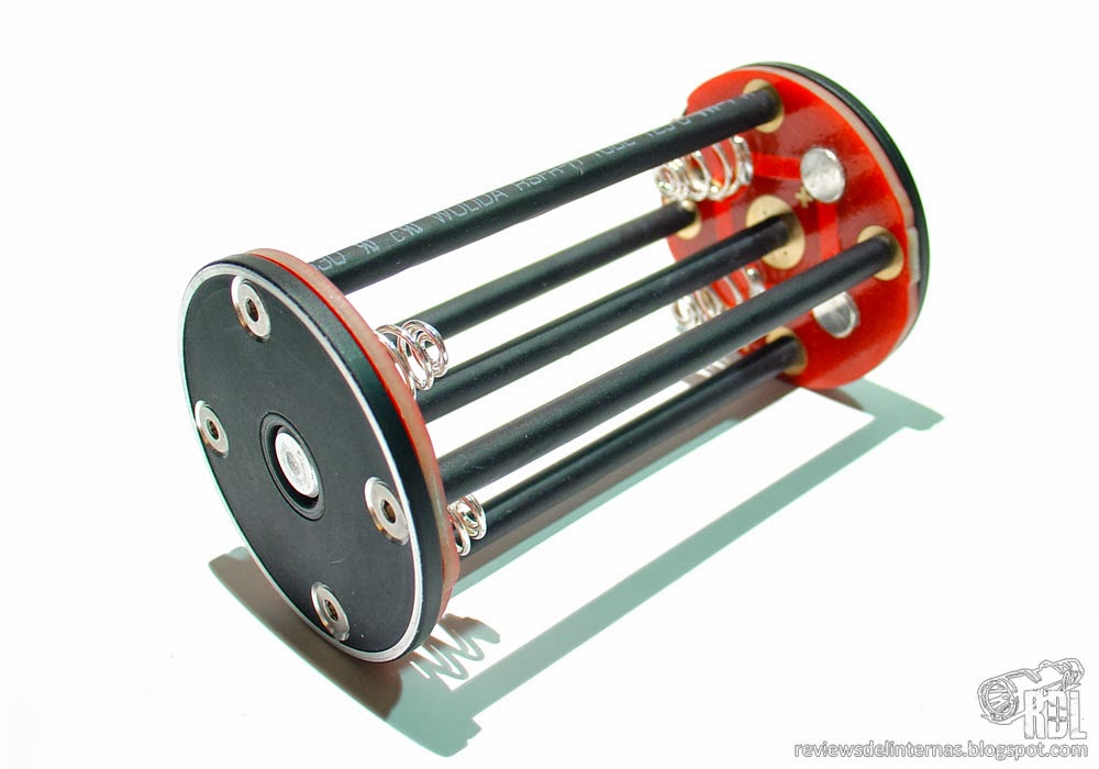 Por último, el muelle que contacta con el negativo del portabaterias, situado en el fondo del tubo, destaca por su gruesa sección.
